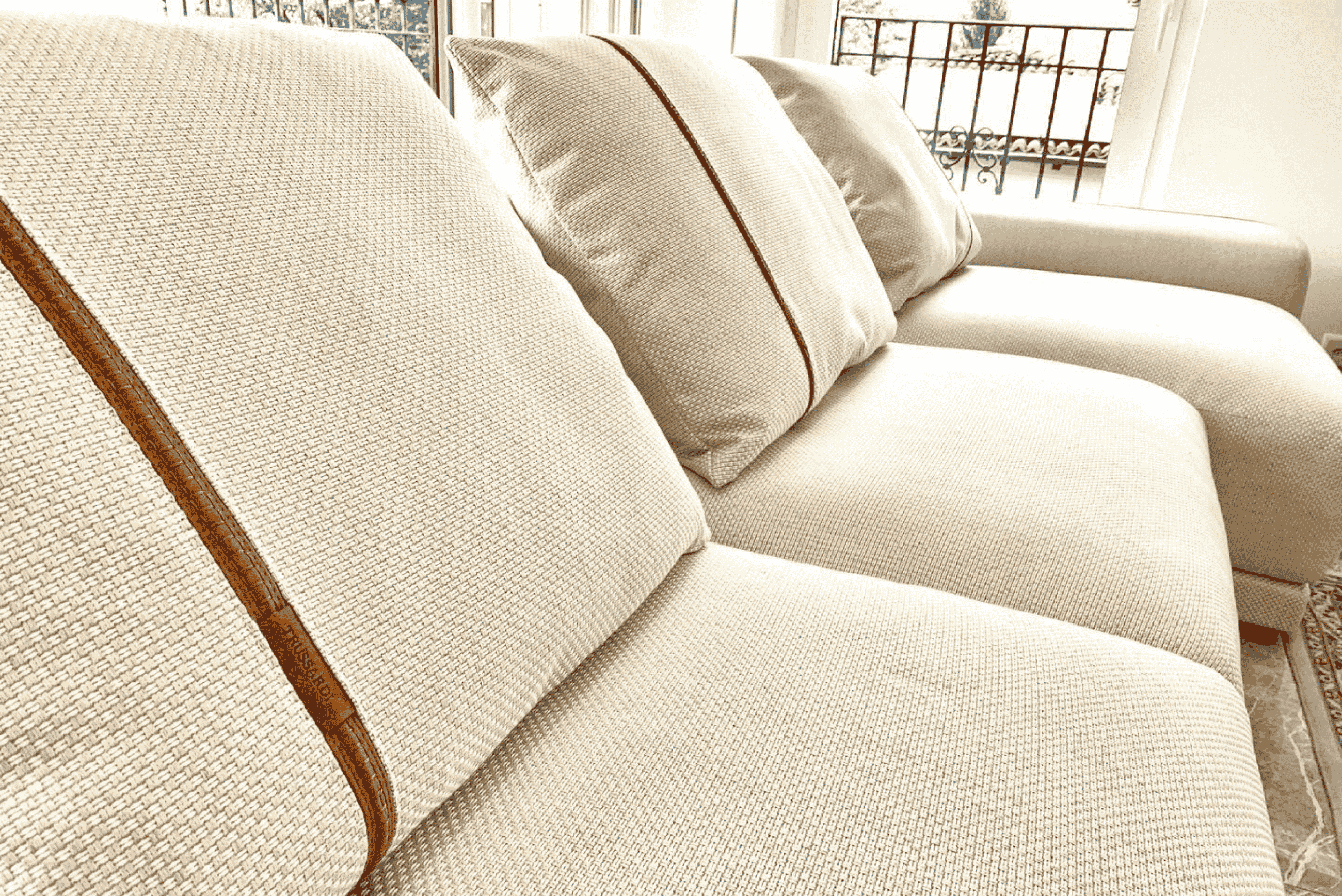 En este proyecto residencial, el diseño interior se convierte en una declaración de estilo y confort. La zona de estar destaca por un sofá de líneas puras y acabados de alta gama, con detalles en piel que remiten a la tradición artesana y a la elegancia atemporal. La paleta de tonos neutros potencia la luz natural que entra a raudales por los amplios ventanales, generando una atmósfera cálida, acogedora y sofisticada.